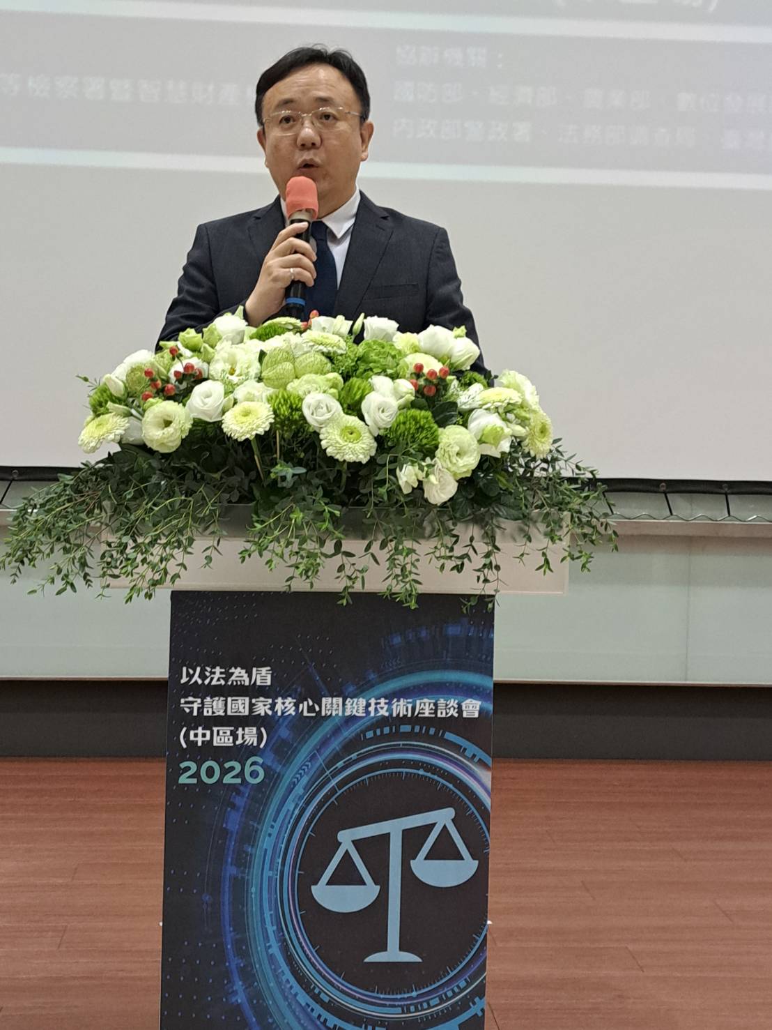 臺灣高等檢察署暨智慧財產檢察分署為促進政府機關跨部門與產學界合作,提升營業秘密保護並守護國家核心關鍵技術,經法務部指導,於昨(18)日下午,在臺中市政府警察局簡報室,舉辦「以法為盾 守護國家核心關鍵技術」座談會,國防部、經濟部、農業部、數位發展部、國家科學及技術委員會、大陸委員會、法務部調查局、內政部警政署、內政部移民署及臺灣臺中地方檢察署共同協辦。法務部馮常務次長親自蒞臨,智慧財產及商業法院(下稱智商法院)亦指派蔡慧雯法官與會。